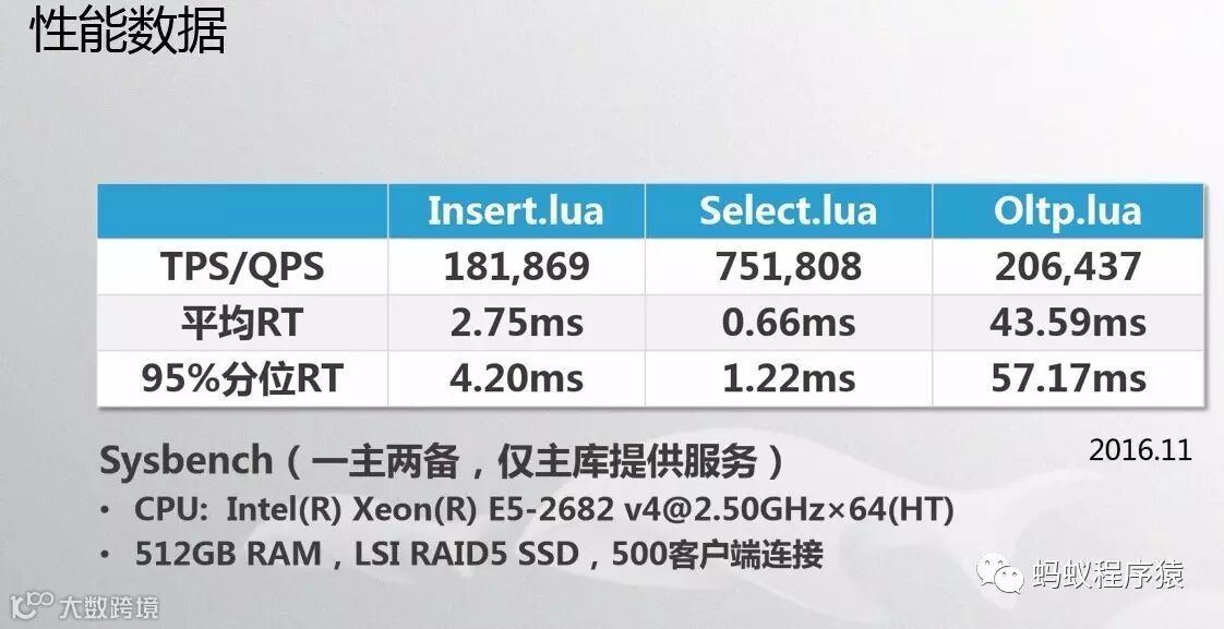 这里给大家看一下我们目前的一个性能的水平,应该说OceanBase在架构稳定之后它在过去的一年里面整个性能水平已经有了非常大地提高。这个性能水平也是目前所有的三副本强同步的数据库产品当中所有有公开的性能测试结果当中最好的一个。
