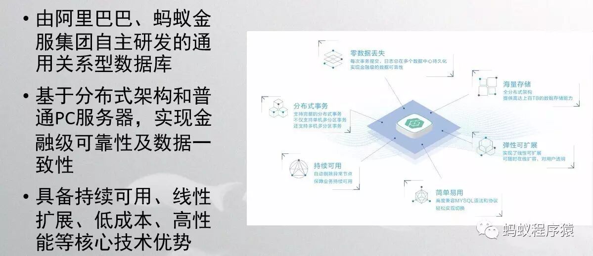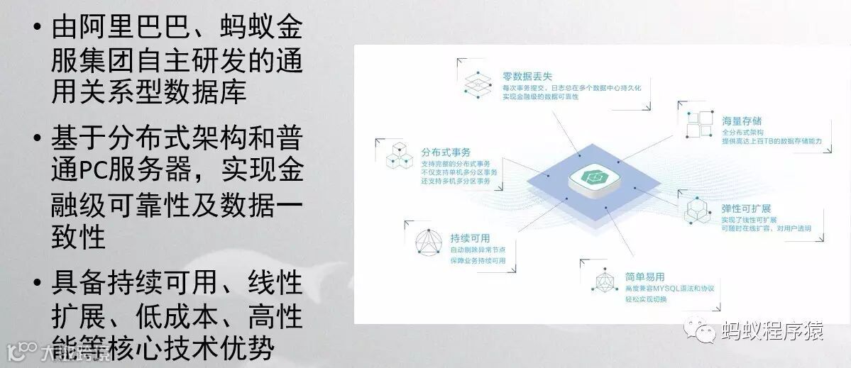 作为一款基于分布式架构的这样一个数据库,OceanBase有非常多的技术优势,但这里面最为核心的我觉得是OceanBase它能够完全的基于普通的PC服务器,来构建一个能够满足金融级的可靠性和数据一致性要求的数据库集群。