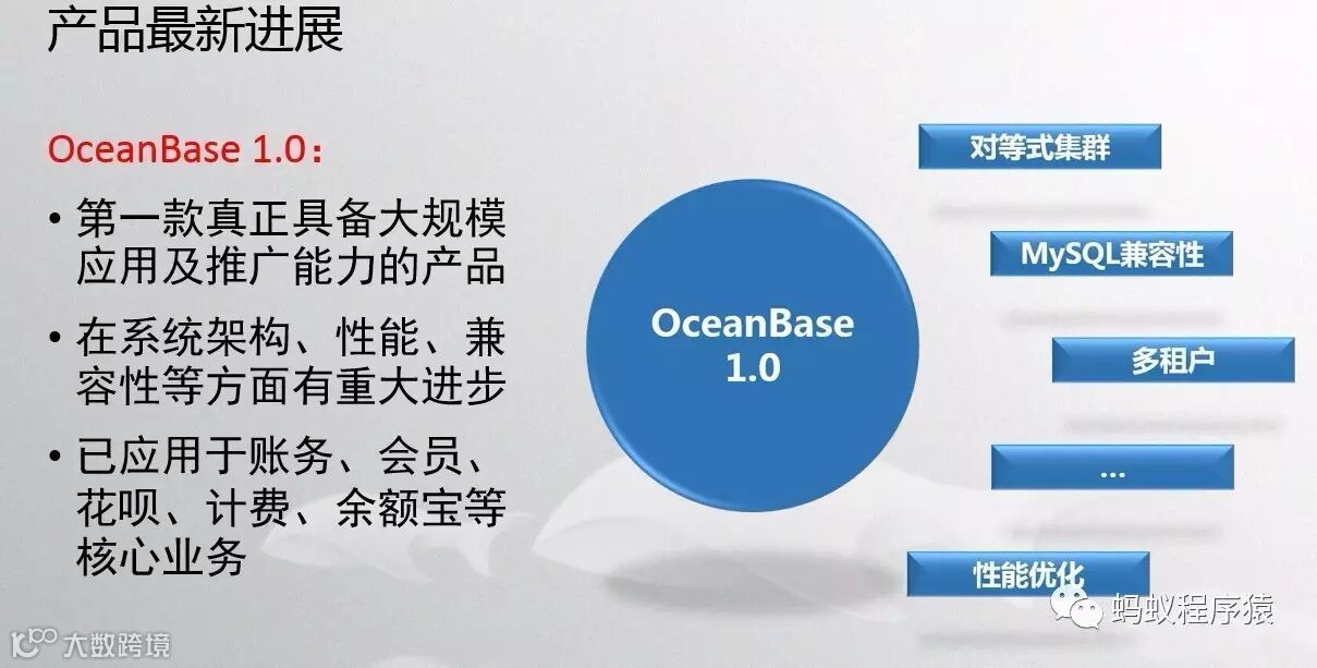 在去年我们正式发布了OceanBase的最新产品OceanBase1.0。OceanBase1.0在整个系统架构和产品的性能和兼容性方面都取得了长足的进步,最重要的是OceanBase1.0它是整个OceanBase产品发展史上第一款真正具备大规模应用和推广能力的产品。