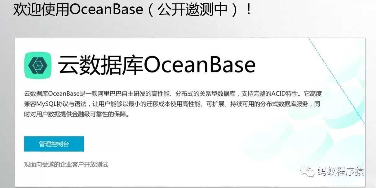OceanBase经过几年的发展,已经在产品上积累了许多重要的技术优势,同时这几年在整个核心业务的稳定运行,蚂蚁金服已经向业界证明了OceanBase能够支撑金融级核心业务的能力。去年我们也通过阿里云平台,正式开启了OceanBase对外提供服务的进程,到目前为止,我们已经同部分的金融客户开展了实质性的项目合作,所以欢迎大家来更多的了解和使用OceanBase!