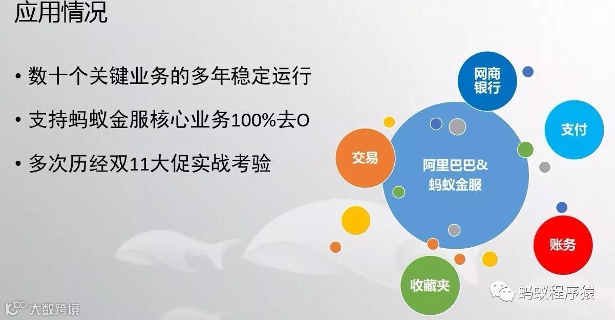 而蚂蚁金服也通过OceanBase的应用,真正实现了所有核心业务100%的去O。到了今天,OceanBase已经在数十个关键业务上上线运行,这里面包括了支付、交易、账务,也包括了网商银行等等系统。这里面很多的核心系统实际上已经稳定运行了多年,期间也经历了多次的双十一大促这样的实战的考验。