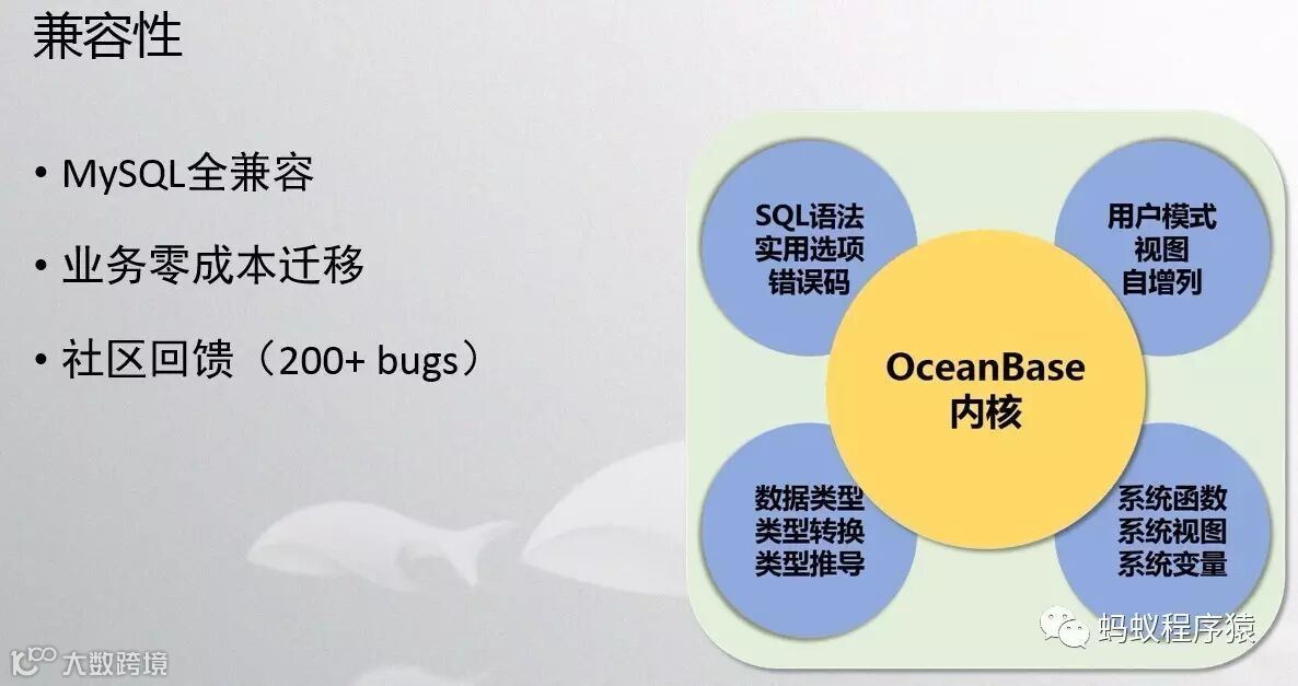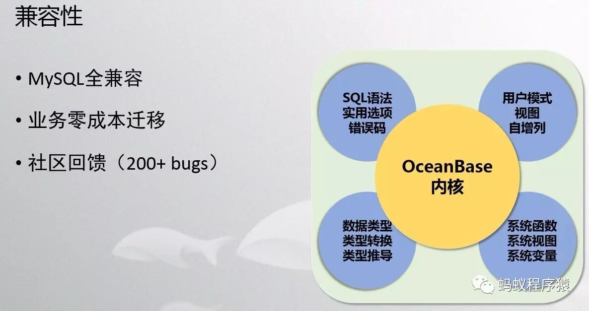 这里面有很多已经超出了Mysql的现有的支撑能力,在设计这方面的功能表现的时候,我们比较多地参考了商业数据库,比如OceanBase1.0引入了一套完整的诊断监控体系,这个监控体系很大程度上参考了Oracle,所以在ORACLE中很多基础的监控设施,比如Top SQL、Top Wait等等,实际上目前OceanBase都已经完整地支持。其它类似的特性,包括SQL Outline、Flashback、Materialzied Views等等,都是如此。这些特性使得基于ORACLE知识体系的客户,包括运维的同学,未来如果使用OceanBase,会发现在很多方面是很熟悉的。