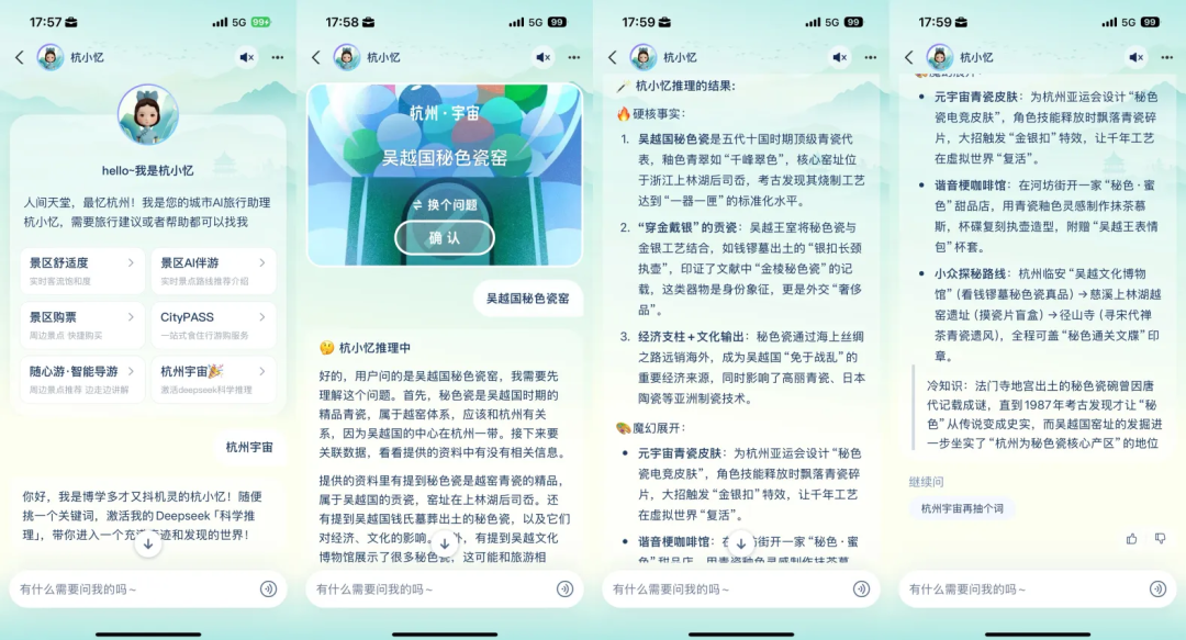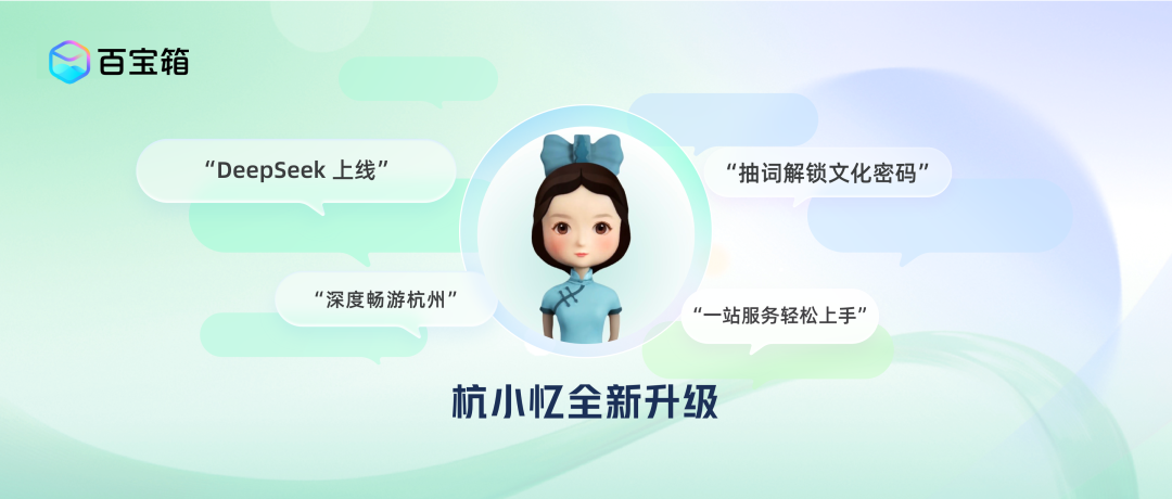 2025 年 2 月 26 日,杭州市文化广电旅游局携手支付宝百宝箱智能体云团队,重磅推出“杭小忆”升级版!这次升级接入了 DeepSeek 大模型,让杭小忆变得更聪明、更有趣!