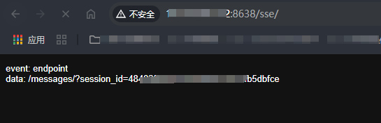 接着 服务器 IP + 端口 /sse 进行访问,如下返回表示成功,接下来就是接入百宝箱!