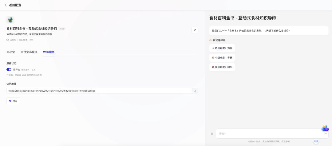 👏 在支付宝百宝箱「味蕾守护者」智能体征集活动中,洛水带着他的作品《食材百科全书 - 互动式食材知识导师》一路过关斩将,成功斩获二等奖!🏆