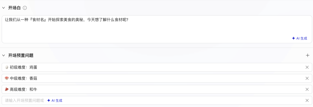 - 根据用户输入的食材,动态生成互动问题