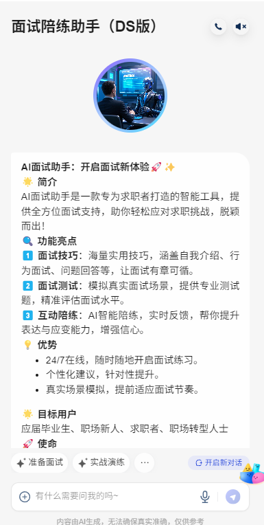 ✨ 闯关成功!本期智能体创作达人——大远,携百宝箱第五期二等奖作品「面试陪练助手(DS版)」强势来袭!🏆