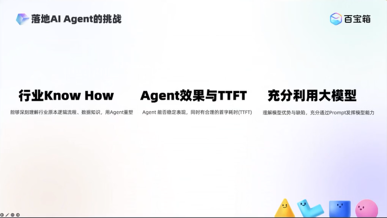 在介绍了 AI Agent 的核心能力和功能组成后,接下来让我们探讨一下实际落地过程中的主要挑战。这些挑战主要集中在以下三个方面: