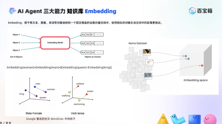 在 RAG 的流程中,Embedding 向量化技术是一个至关重要的环节。无论是文本、图像,还是单词,Embedding 的目标都是将这些内容转化为高维向量表示。这种向量表示捕捉了数据的语义信息,便于在向量数据库中存储和检索。