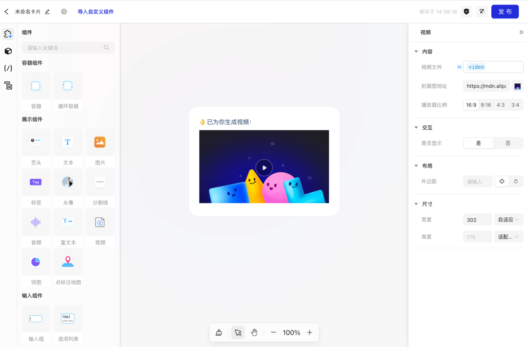 💪 从此可以搭建栩栩如生的视频类卡片。