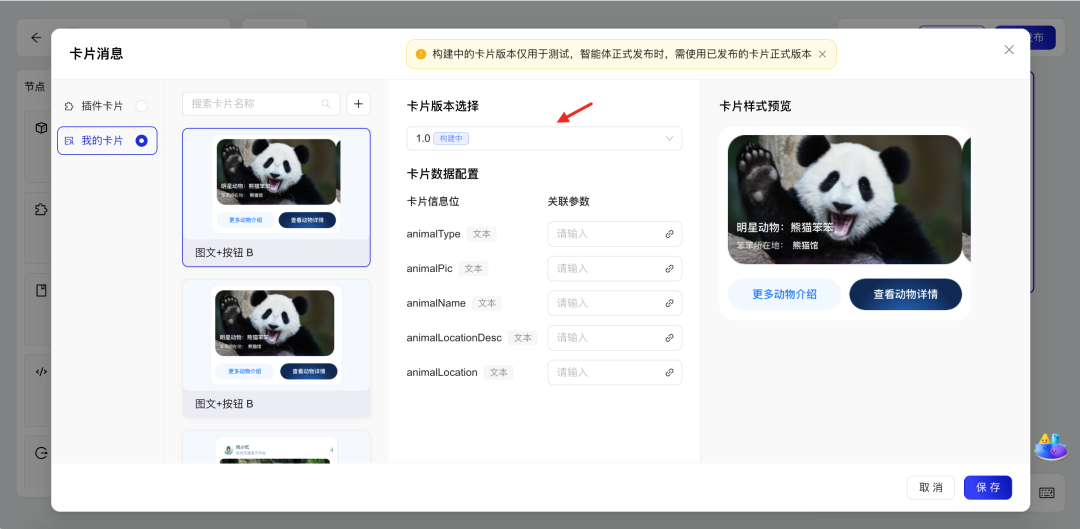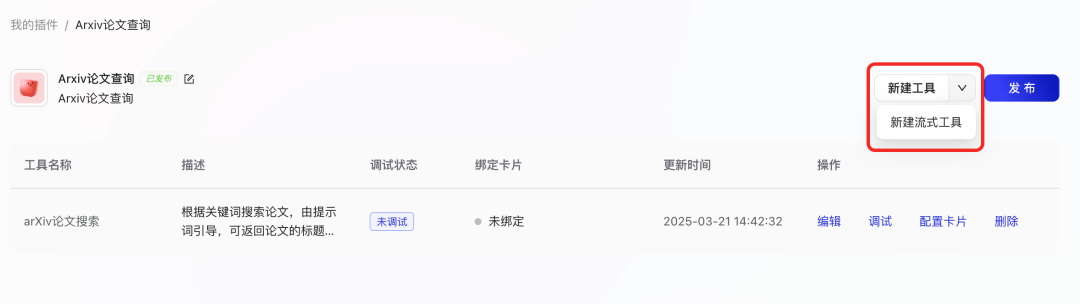 无需等待构建完成,点击发布后,卡片就可以直接调试。