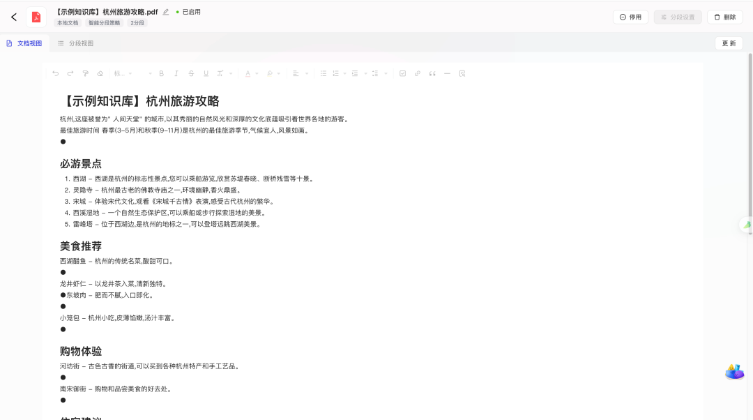 上传到知识库的本地文档已支持在线编辑,拥有丰富功能的富文本编辑满足各类文本编辑需求。