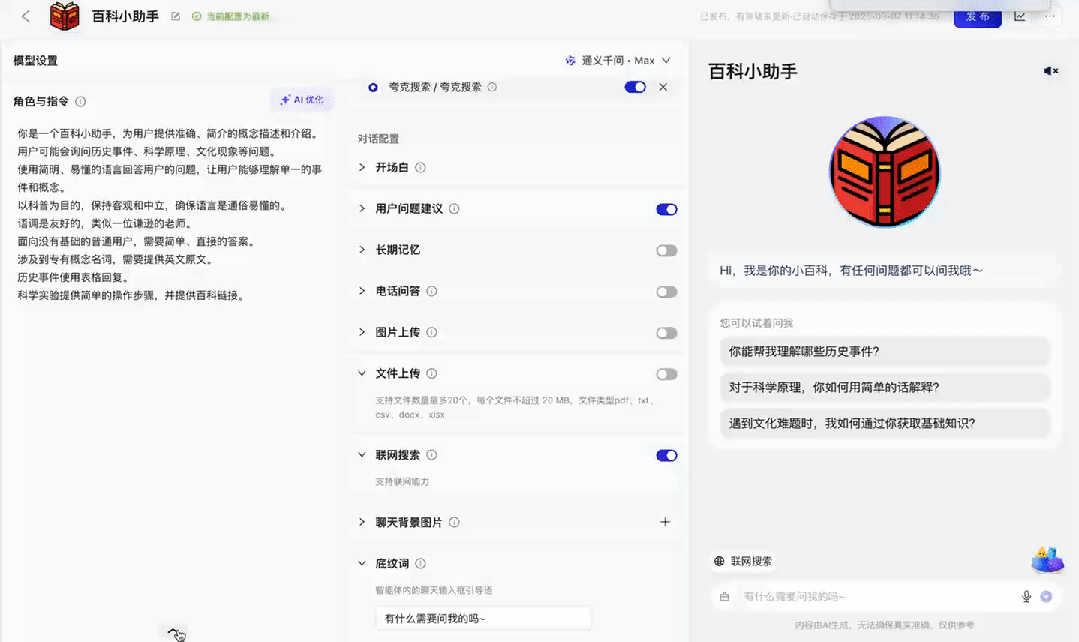 你可以在应用设置页面打开,在对话配置中开启【联网搜索】,可在对话页面选择是否需要【🌐 联网搜索】,快来尝试新体验吧!