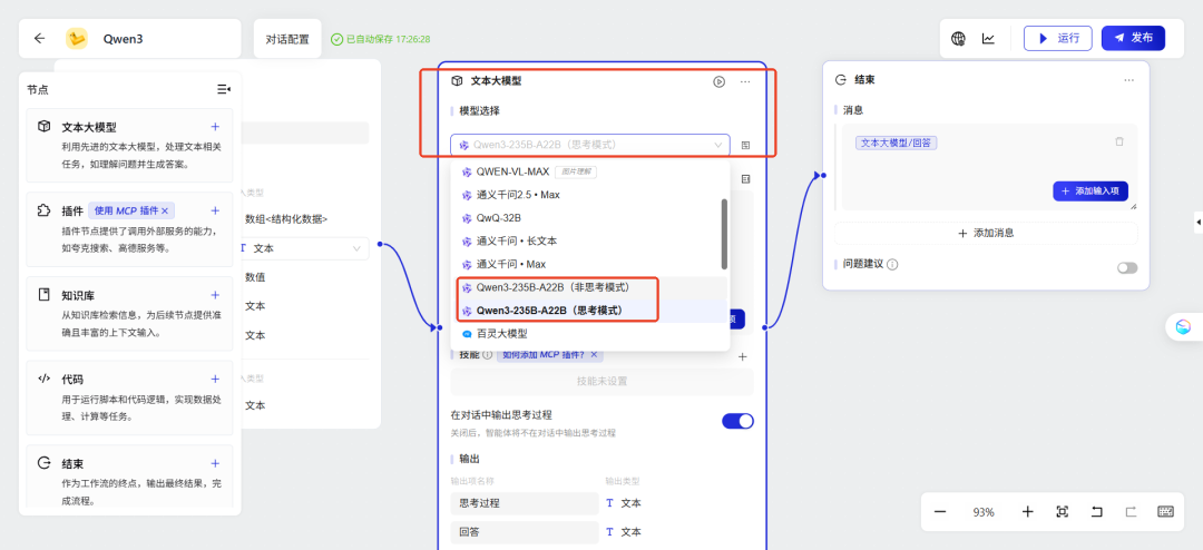 在 AI 开源领域掀起巨浪的 Qwen3,正以「思深行速」的技术革新重新定义智能体开发边界。继打造「3 分钟搭建 MCP 智能体」的高效开发范式后,蚂蚁百宝箱也在第一时间完成 Qwen3 大模型接入:从百亿参数到多场景适配,从代码生成到多语言支持,开发者无需复杂部署,即可在百宝箱平台 0 成本调用这一「全能型选手」,让每个创意都能借助 Qwen3 的强大能力落地生根,开启智能体开发的「加速模式」。