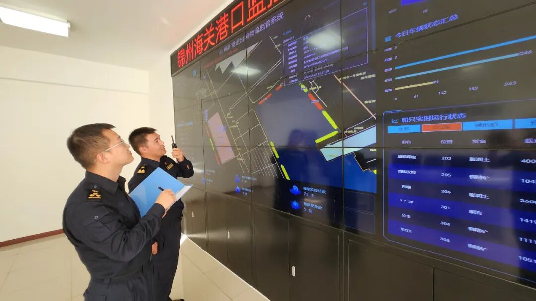 1月24日,在锦州港海关监控指挥中心,锦州海关关员通过“港口物流信息化监管平台”对港区外贸货物物流情况进行实时监控。锦州海关综合应用物联网、AR、GIS地图等技术,在海港口岸搭建信息平台、建设智能卡口,实现全景监控、有效管控、便利通关,提升智慧口岸建设水平。