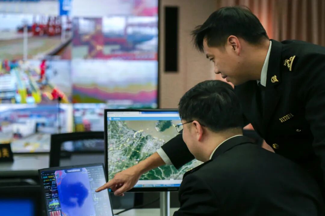 1月23日,宁波海关所属大榭海关关员对在港船舶进行动态监控。宁波海关在智能监管、集约监控等方面积极探索,不断在智慧口岸建设中发挥自身优势。2024年以来,已通过智能化方式监控进出境船舶1680艘次。
