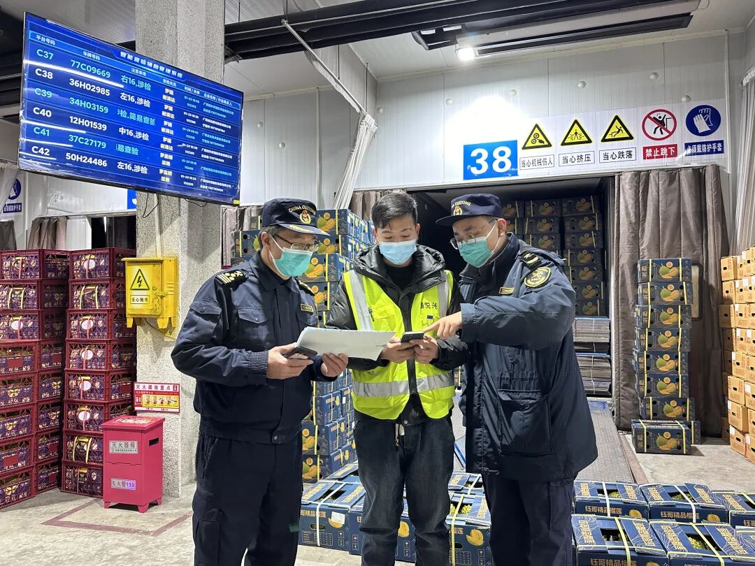1月23日,大兴机场海关关员毛坤、冯振中现场监管车辆入区。大兴机场海关搭建“智能卡口”智慧监管体系,减少了车辆等待时间,助力打造“一个系统、一次理货、一次查验、一次提离”的区港一体化智慧通关监管新模式,为企业节省50%以上运力成本。