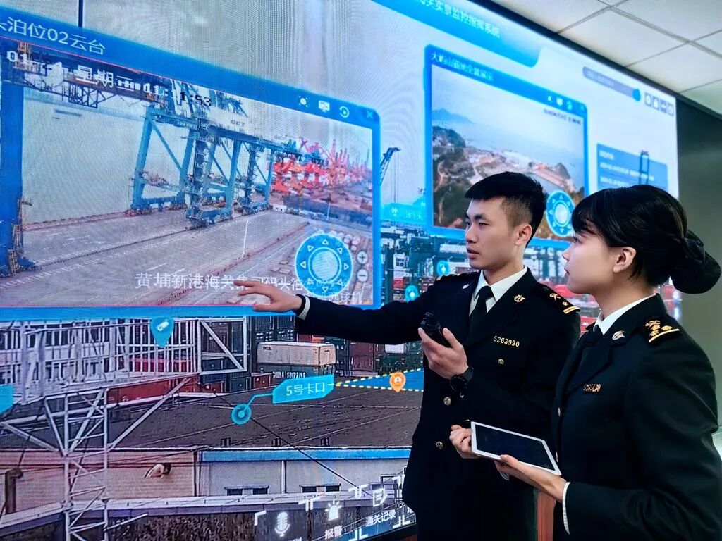 1月24日,黄埔海关关员运用该关自主开发的运行管控平台对口岸装卸作业开展管控。该关通过强化“视频+数据”等综合科技手段的应用,有效提升对口岸监管等领域运行管控的效能。