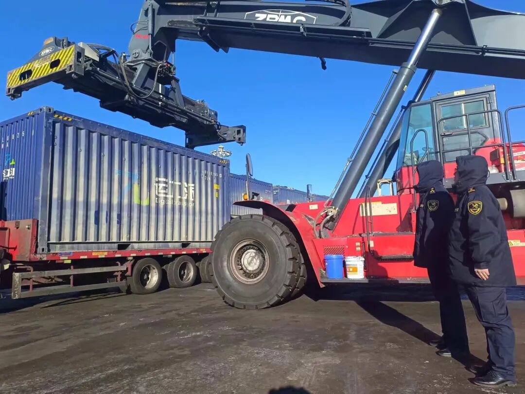 1月18日,包头海关关员监管进口煤炭。包头海关大力推动智慧口岸建设,指导企业建设“智慧场站”系统,通过给每个集装箱贴一个“身份证”,即可实时动态监控货物“进、出、转、存”情况和通道卡口数据。同时搭载“智慧抽采样”模块,叠加自动化采样设备应用,实现了进口煤炭物流监管、检验作业全流程自动化、智能化管理。2023年,满都拉口岸进出口货运量突破500万吨,达528.4万吨,同比增长80.2%,创口岸开关以来单年货运量新高。