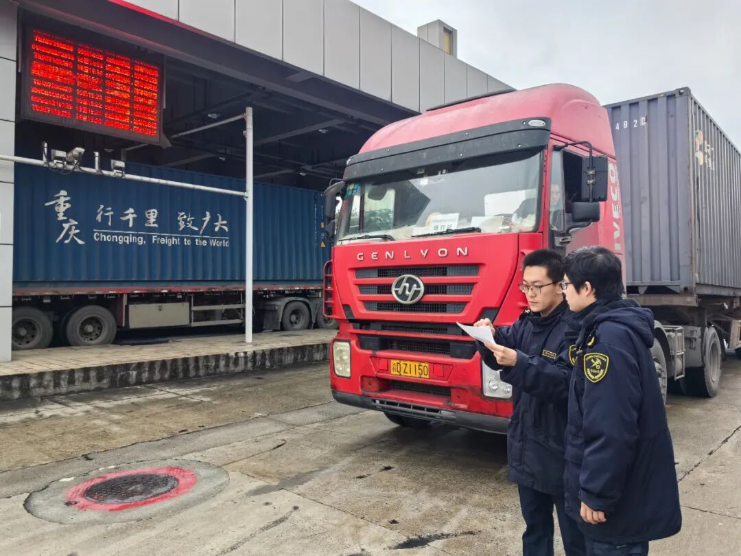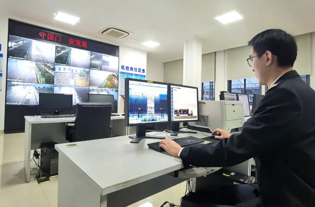 1月24日,渝州海关关员对铁路口岸卡口自动运抵系统进行校验。渝州海关加快智慧铁路口岸建设,创新“提前申报+自动运抵”模式,推广查验预约功能,将海关监管嵌入口岸作业流程,持续优化铁路快速通关模式在中欧、中老、中越班列上的应用,单列可缩短口岸作业时间24小时以上,单个集装箱节约成本约200元。