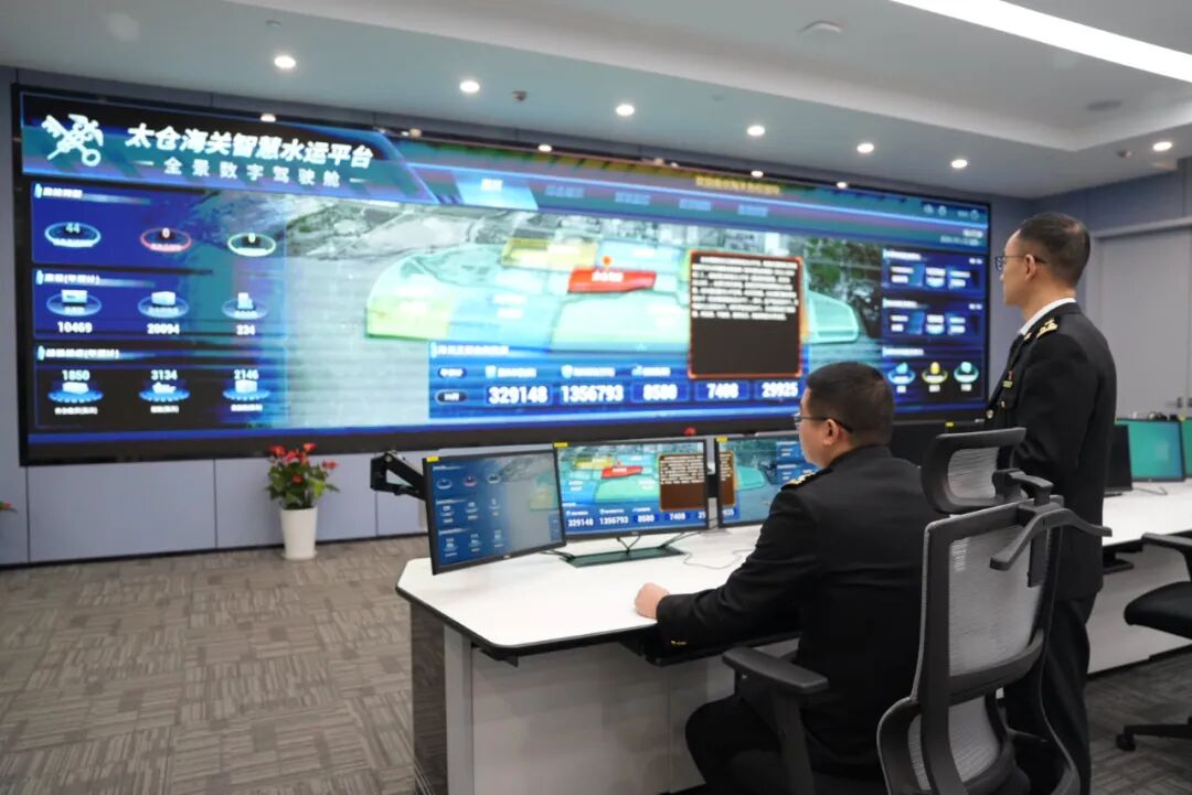 1月22日,南京海关所属太仓海关关员在智慧水运口岸操作平台对太仓港进出口货物开展现场监管。通过科技赋能、数字赋能,太仓港努力打造智慧化口岸,依托太仓海关智慧水运平台,提升口岸监管效能,优化进出口通关流程,不断提升物流效率。2023年,太仓港共完成外贸货物吞吐量1.11亿吨,同比增长13.64%,为太仓港开港以来外贸货物年吞吐量首次突破1亿吨大关。