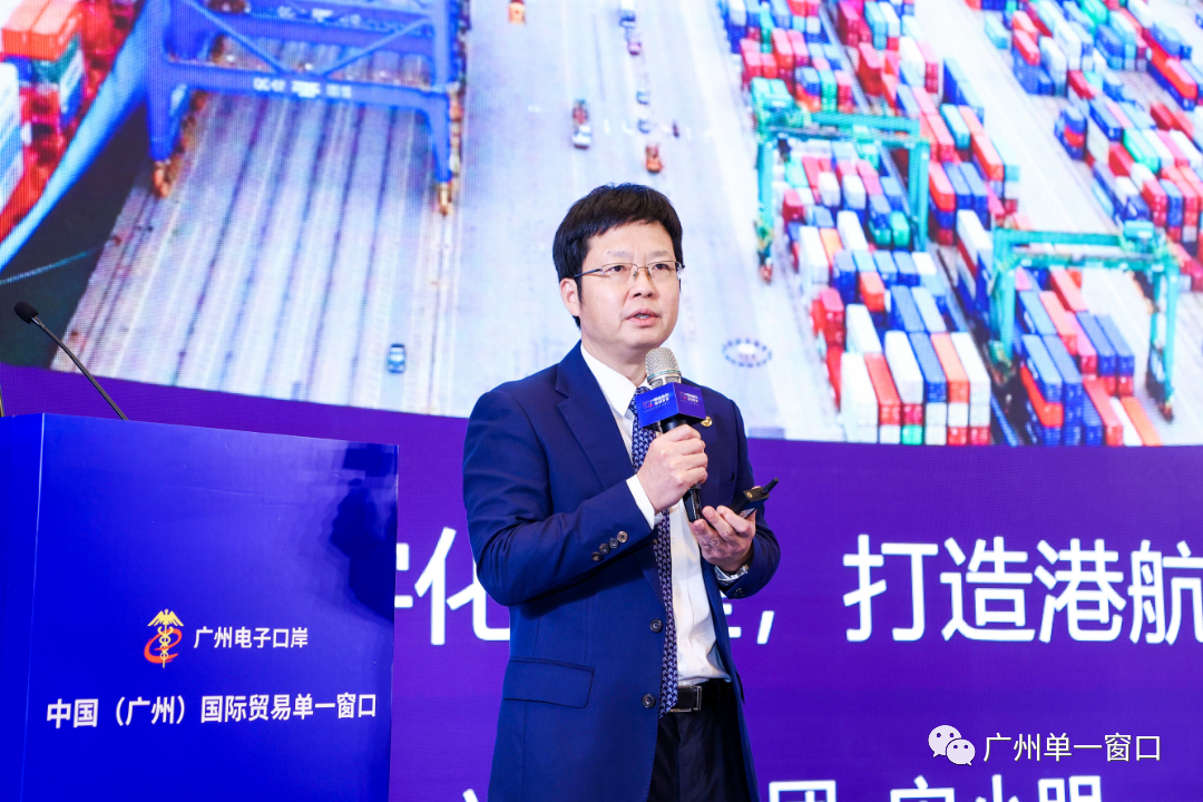 广州港集团宋小明副总经理以《加速港口数字化转型,打造港航货优质生态圈》为题分享智慧港口建设经验。