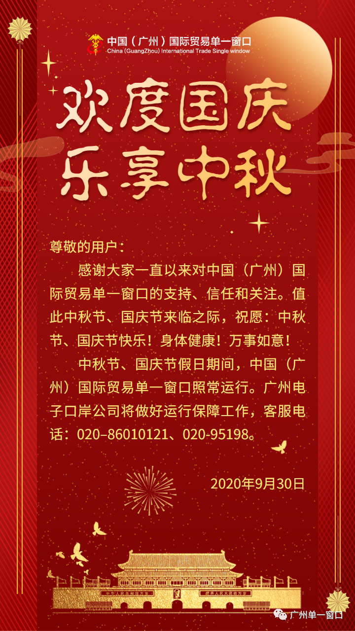 节日快乐 | 中国(广州)国际贸易单一窗口假期继续为您做好服务保障