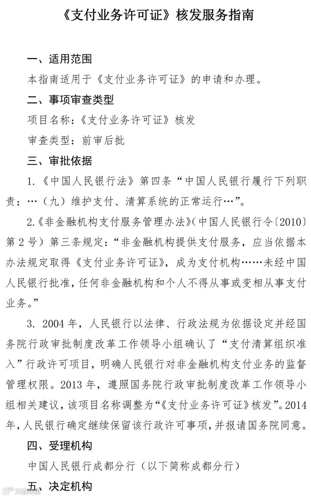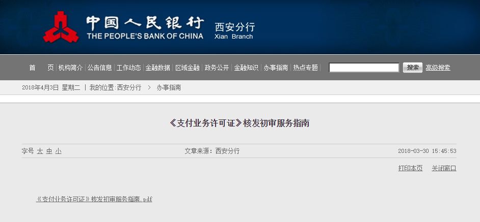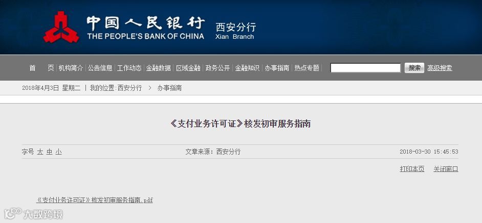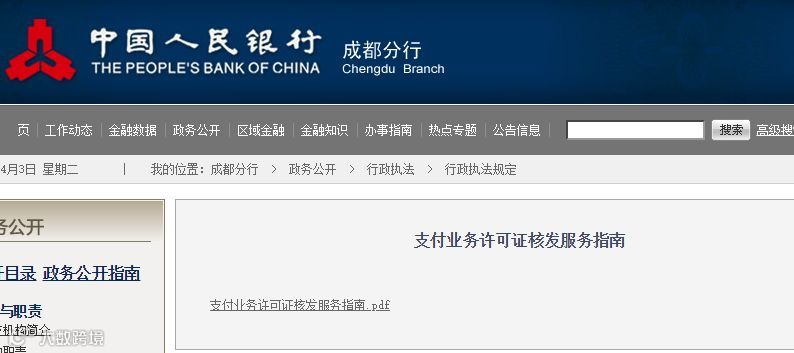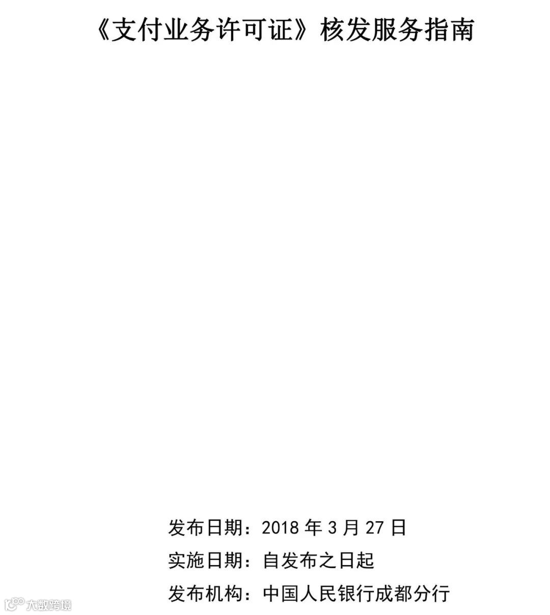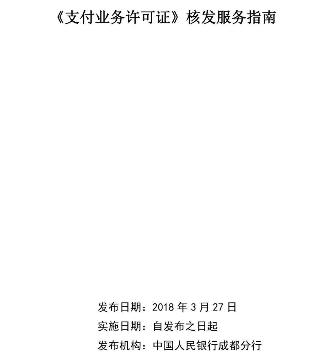 人民银行成都分行于3月27日发布的《支付业务许可证核发服务指南》全文
