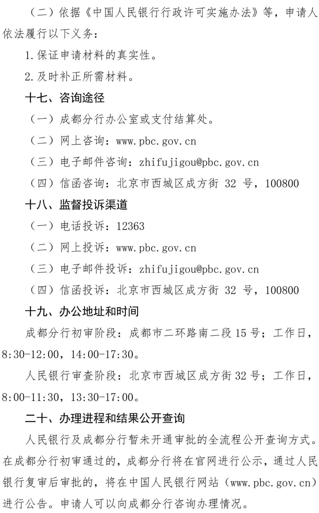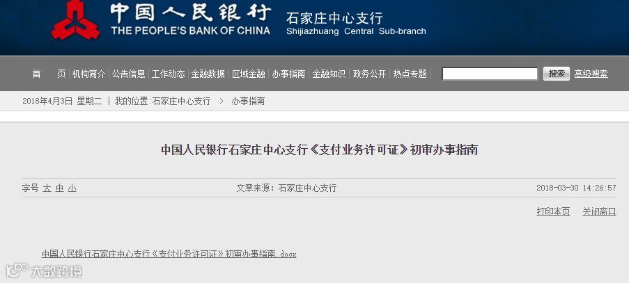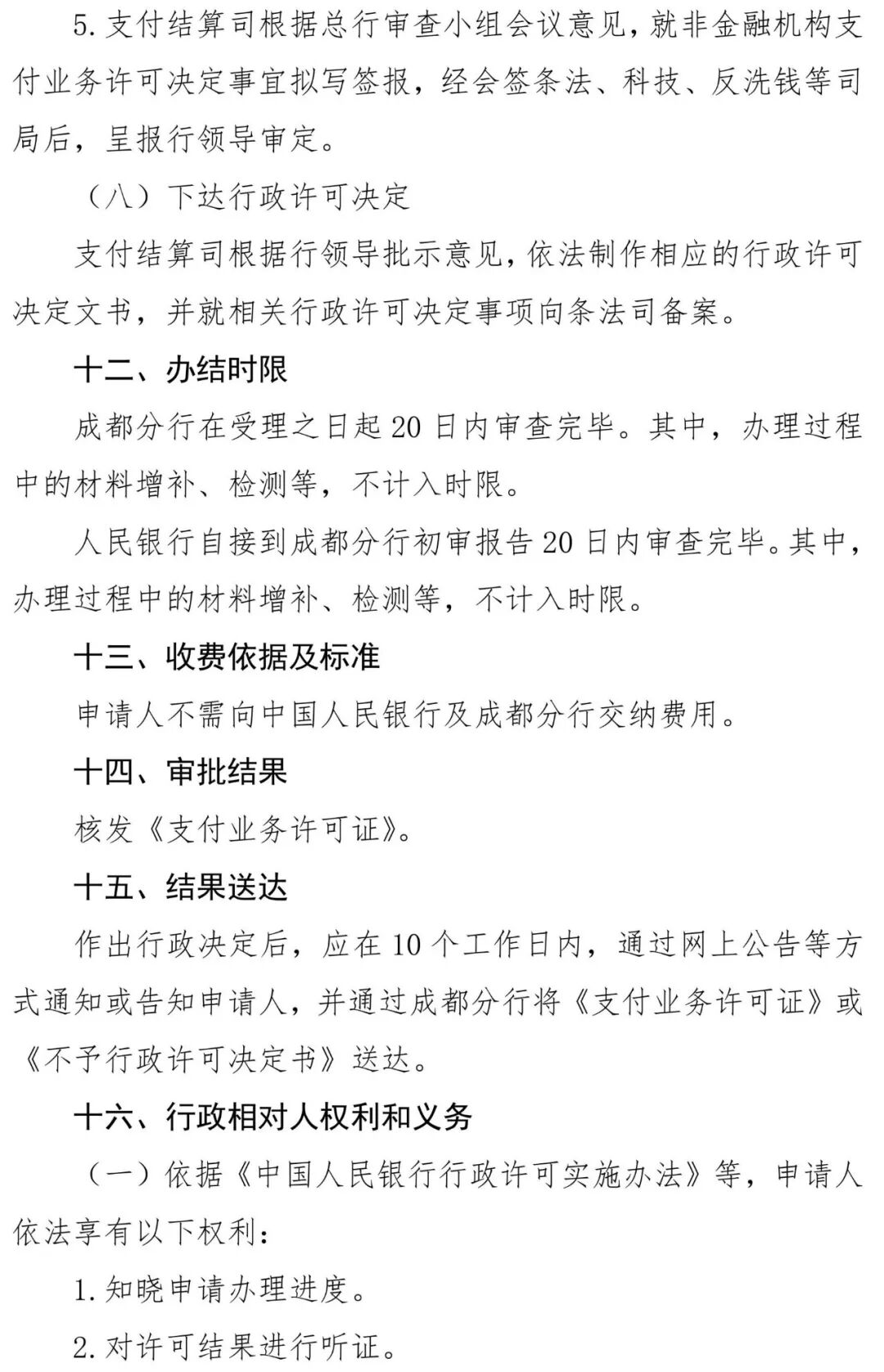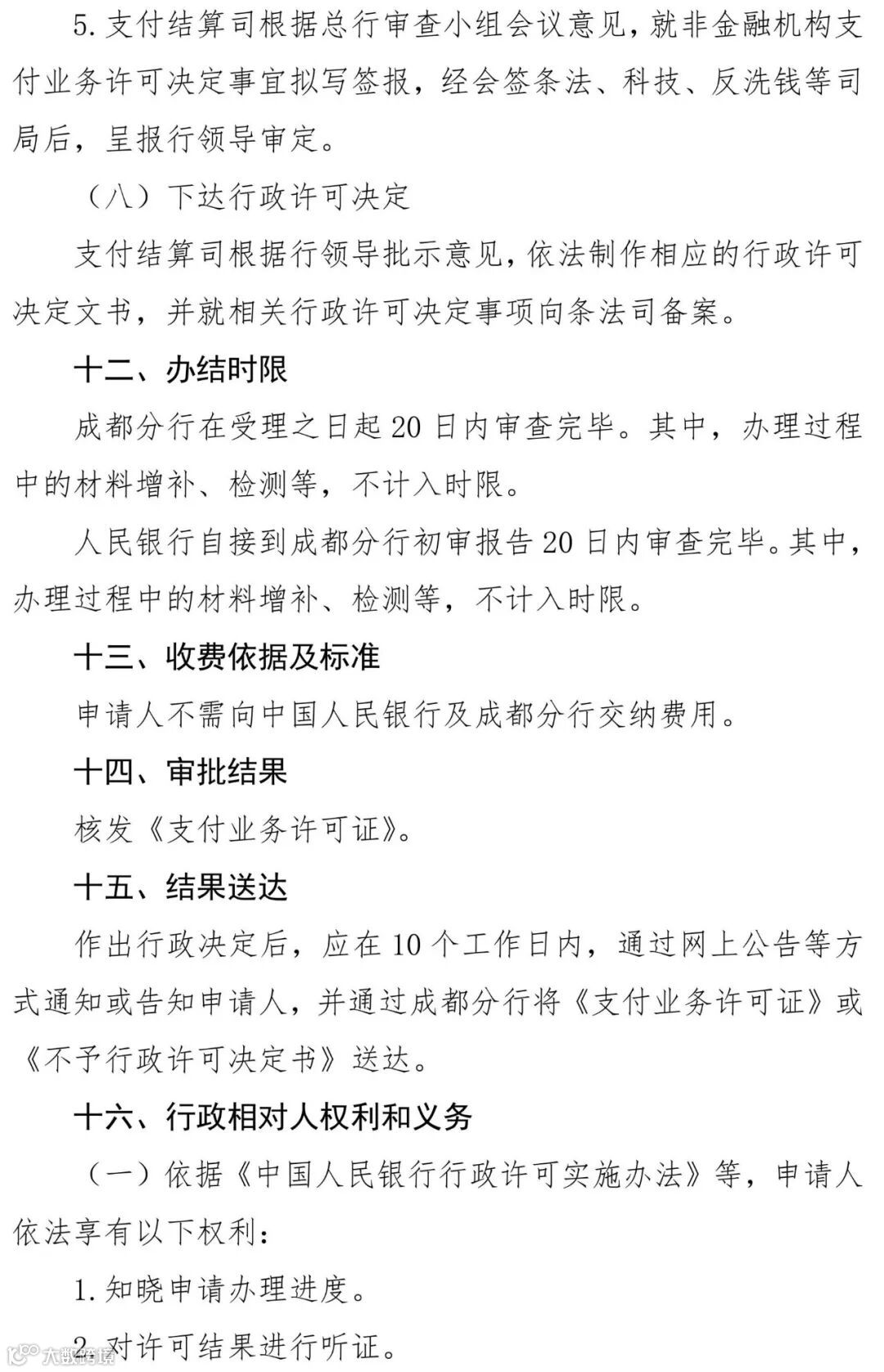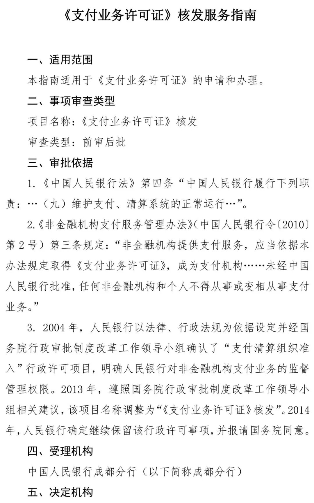 人民银行成都分行于3月27日发布的《支付业务许可证核发服务指南》全文