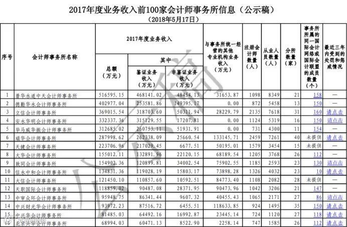 中国注册会计师协会重磅公布会计师事务所收入百强!