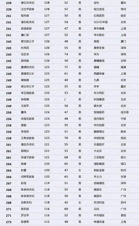 从上榜富豪的所属行业(申万行业一级分类)来看,医药生物,房地产和电子、半导体及制造排名前三。