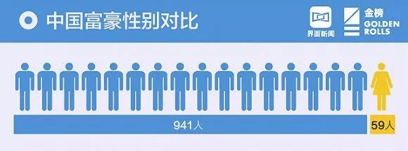 榜单中男性富豪占有绝对的优势,共有941位;女性富豪有59位,广泽国际发展的崔薪瞳是最年轻女富豪,只有28岁,拥有61亿元财富。