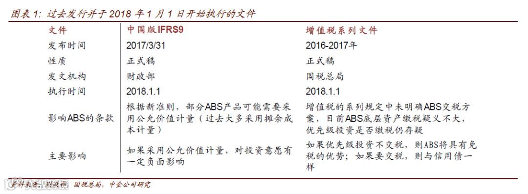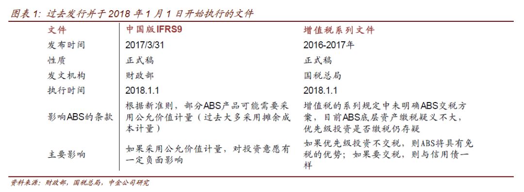 中国版IFRS9是指2017年3月31日财政部发布的三项金融工具会计准则。金融工具会计准则的变动将影响ABS的会计计量方式,部分产品可能由摊余成本计量改为以公允价值计量,增加利润波动,从而对投资意愿产生负面影响。