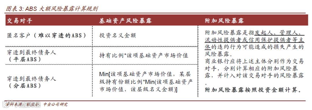 1、大额风险暴露监管指标:严重影响银行自营投资ABS,具体影响程度取决于填报方案