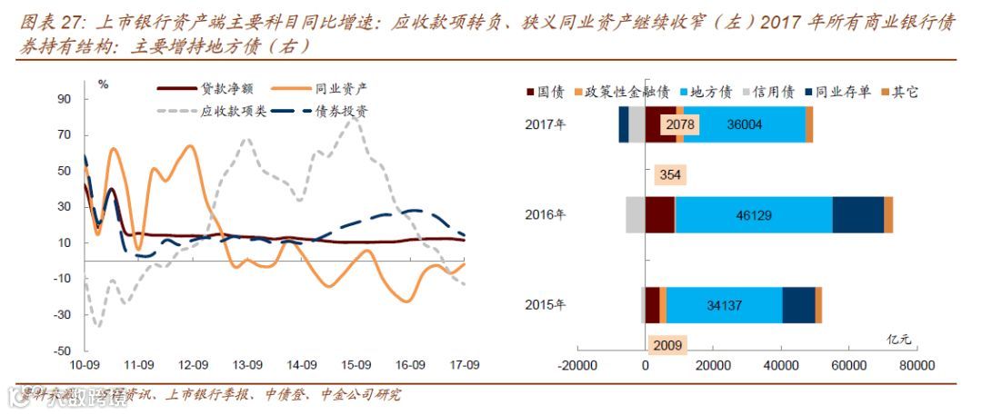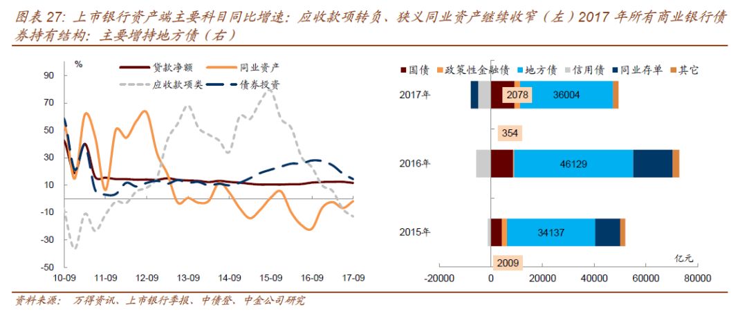 与此相似的是,负债端的情况大同小异,银监会流动性新规等倒逼向一般存款和长久期同业负债倾斜。而央行拟于2018年一季度将同业存单纳入MPA同业负债占比考核,主要针对资产规模5000亿元以上的银行与期限1年以下的存单,同时设置存单的发行额度限制,均在堵127号文的漏洞。部分中小银行面临较大的负债端调整和腾挪压力,在此过程中需要谨防流动性和资金链断裂风险。