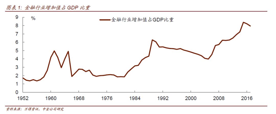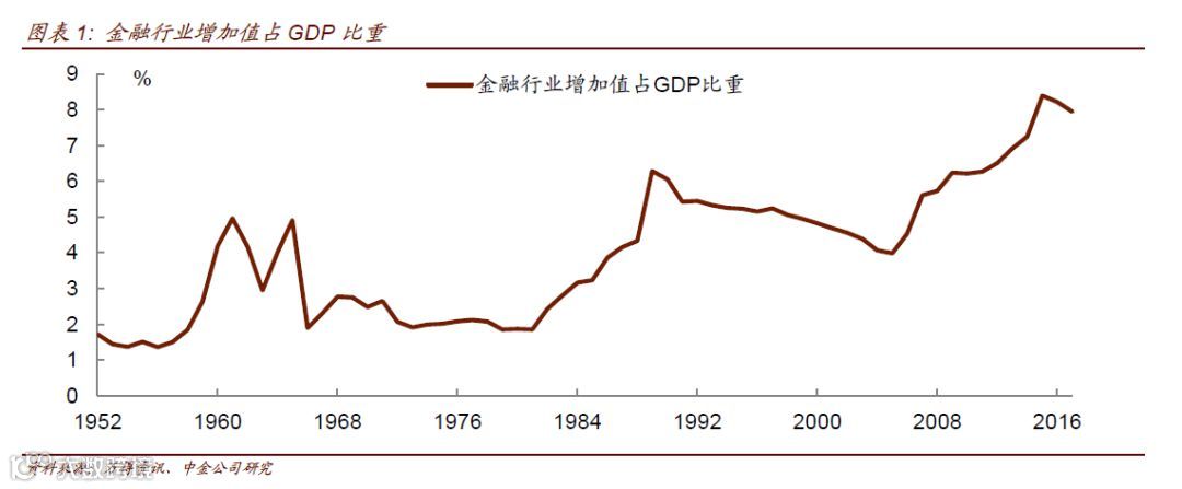 近十年是我国金融行业发展最快的时期,尤其表现为金融行业增加值在GDP的比重持续攀升。不过,金融体系在发展过程中也出现了一些问题,比如链条日益复杂,一些所谓“创新”逐渐脱离实体、沦为纯粹的监管套利等。2016年中央经济工作会议提出,要把防控金融风险放到更加重要的位置,下决心处置一批风险点,着力防控资产泡沫,提高和改进监管能力,确保不发生系统性金融风险,开启了本轮金融严监管的大潮。