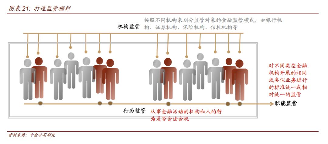 (1)突出“监管姓监”,强调合规文化和责任人制度,加大处罚力度,将监管重心定位于防范和处置各类金融风险。金稳委成立之后,更加重视职能监管和行为监管,套利空间将大大挤压。