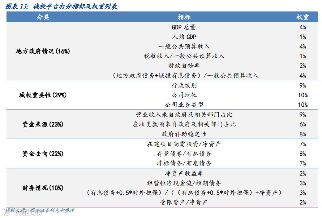 第一大类为城投平台重要性,占比29%,下属包括三个指标。