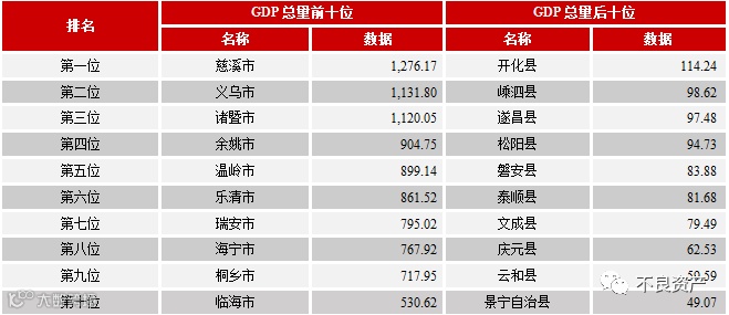 根据2017年浙江统计年鉴,经济总量方面,2016年全国GDP超千亿的县市共21个,其中浙江占了3席,包括慈溪市(1,276.17亿元,隶属宁波)、诸暨市(1,120.05亿元,隶属绍兴)及义乌市(1,131.80亿元,隶属金华)。