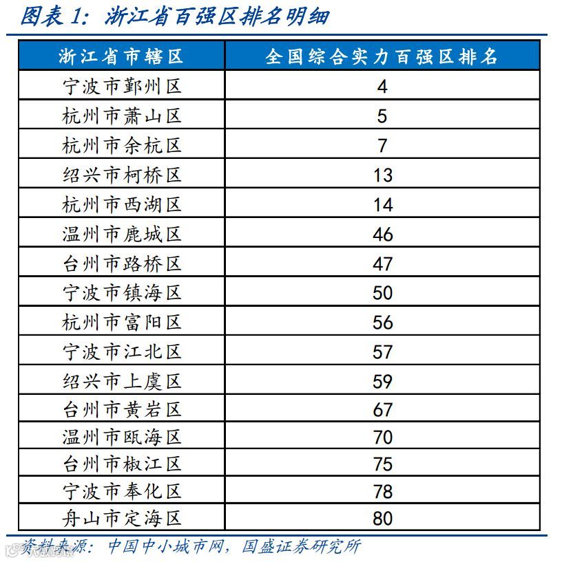截至2017年9月15日,浙江省下辖11个地级市、37个市辖区、19个县级市及33个县。其中全国百强区有16个,百强县有14个,详见图表1和图表2。