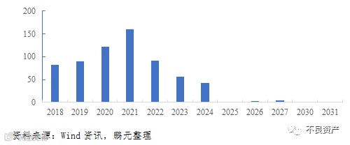 截至2017年11月末,浙江省样本城投存量债到期分布如下图,其中2018年将有82只债券到期,2019年有90只债券到期,2020年有122只债券到期,2021年到期债券数达160只,目前来看,浙江省存量城投债到期高峰在2021年。