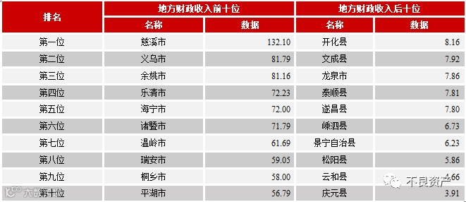 表4 2016年浙江省下属部分县市地方财政收入排名(单位:亿元)