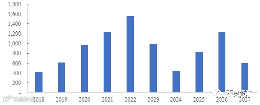 (2)存量债券/有息债务。2015年交易所公司债发行放开,叠加市场环境较好,城投平台发行了大量债券融资。但在目前违约增多,市场信用风险偏好普遍降低的情况下,弱资质、存量债规模较大的城投发债借新还旧较为困难。而且债券融资,市场公开程度和关注度很高,如果违约负面冲击很大,所以存量债券占比较高的平台未来刚性偿债压力较大。