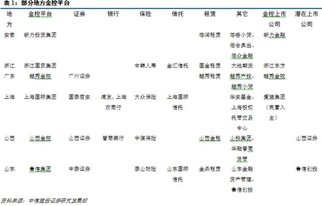 比如天津泰达集团、江苏国信资产管理集团、浙江省金融控股有限公司等,一般以“地方财政+金融资本”形式出现,对分散的地方财政性质股份进行整合,吸引各类金融要素资源区域化聚集。