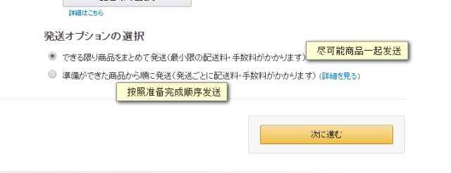第二个选择是希望尽快的收到购买的商品,所以先准备好的商品将先发货。这样发货的包裹数量会增加,而且需要收取额外的费用。