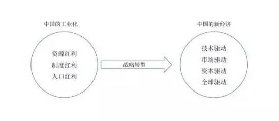 中国现在正在从工业化向后工业时代转型,制度红利、资源红利、人口红利驱动变成技术、资本、市场和全球驱动。