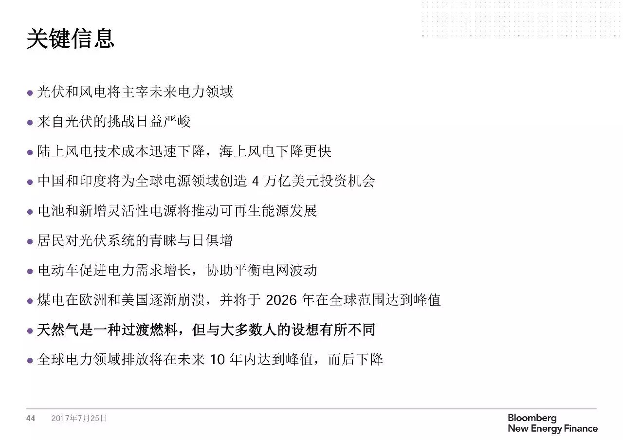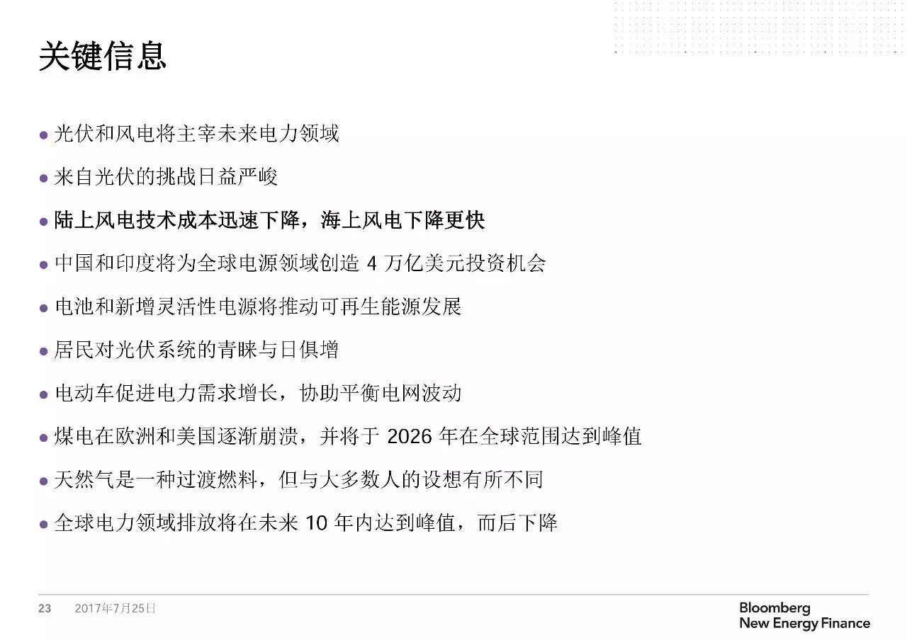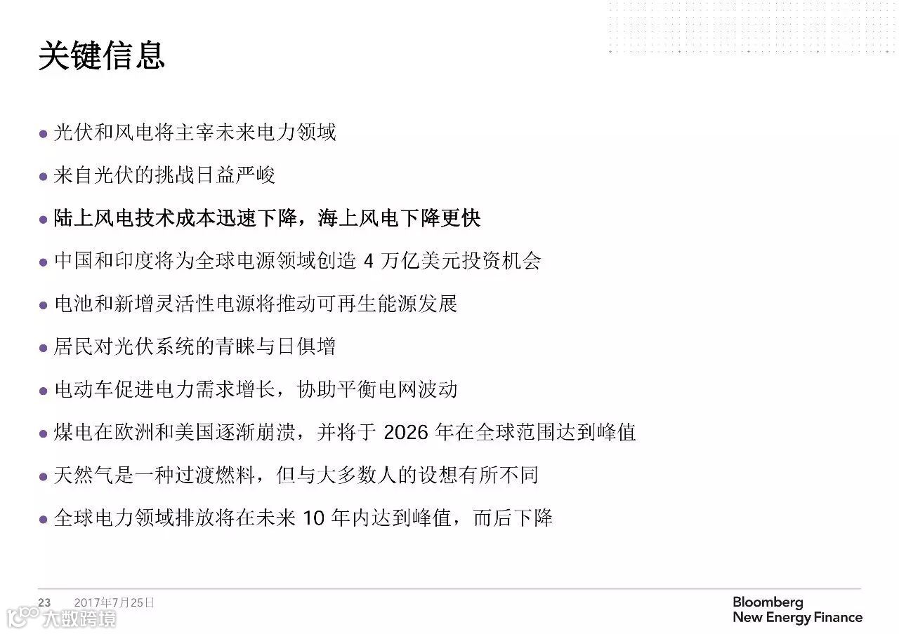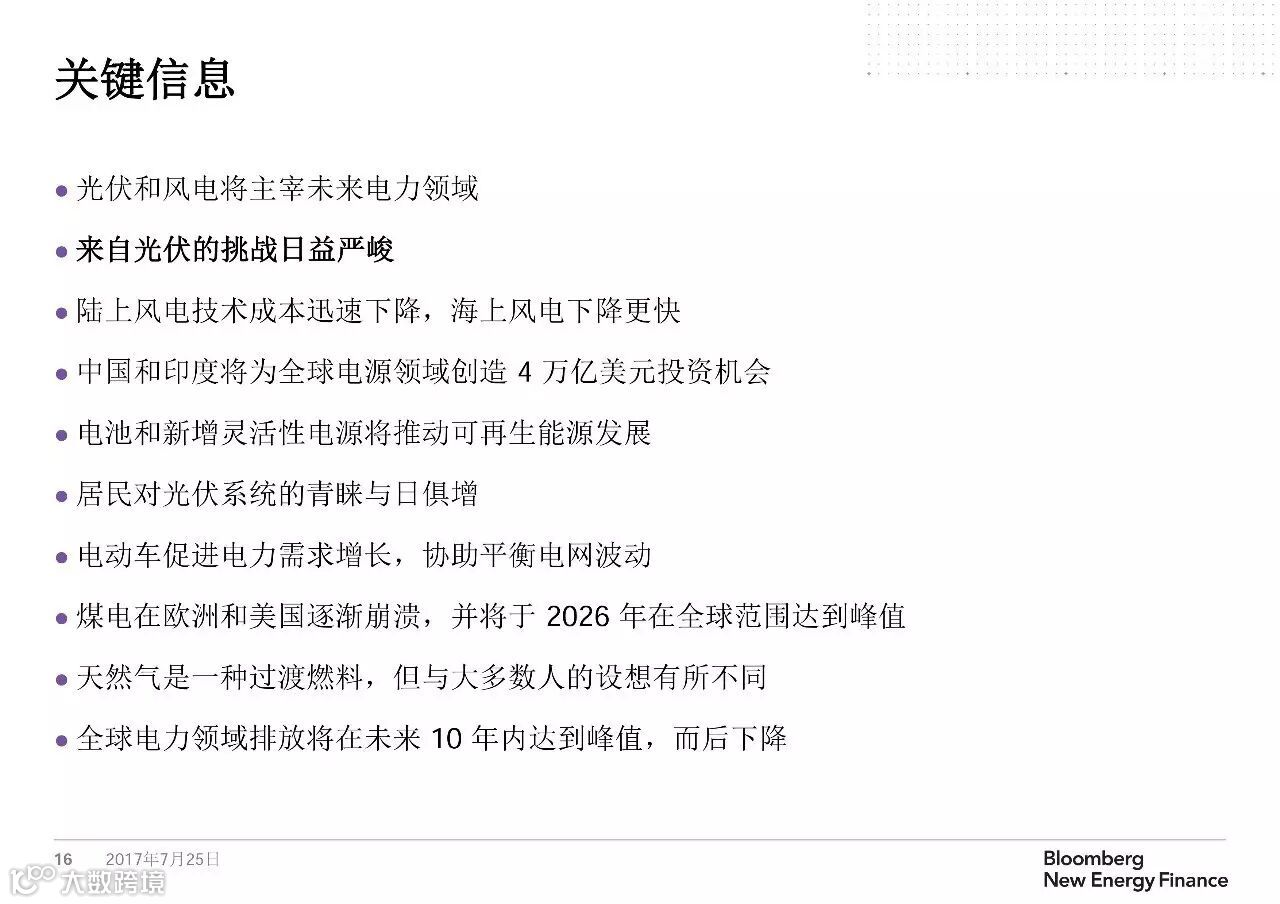 7月25日,彭博新能源财经发布2017新能源展望报告,本文为报告PPT版本。