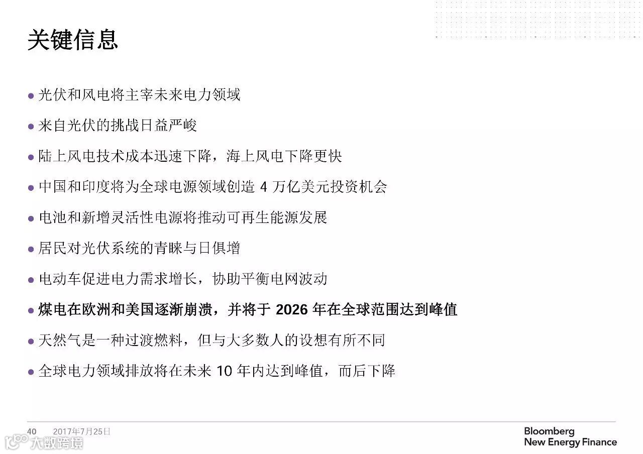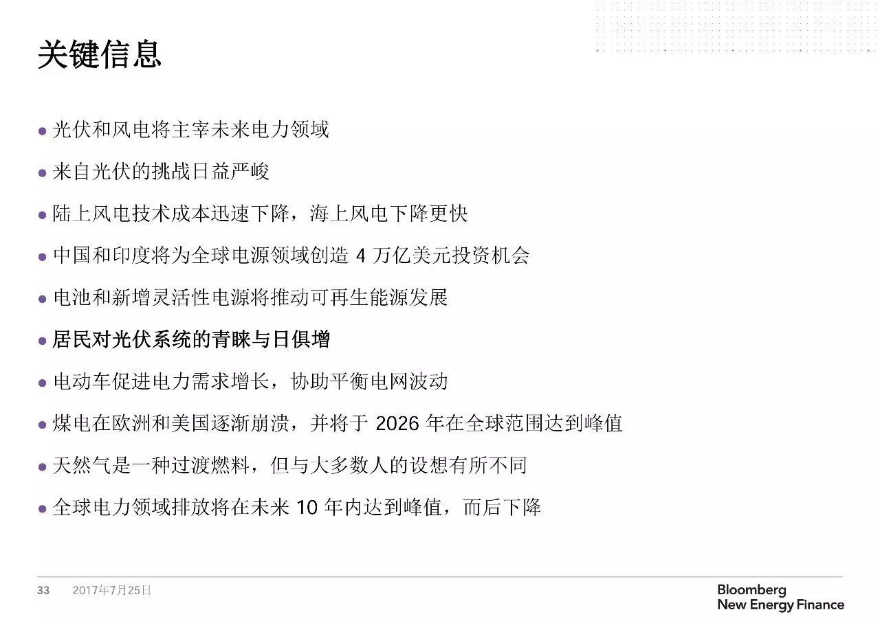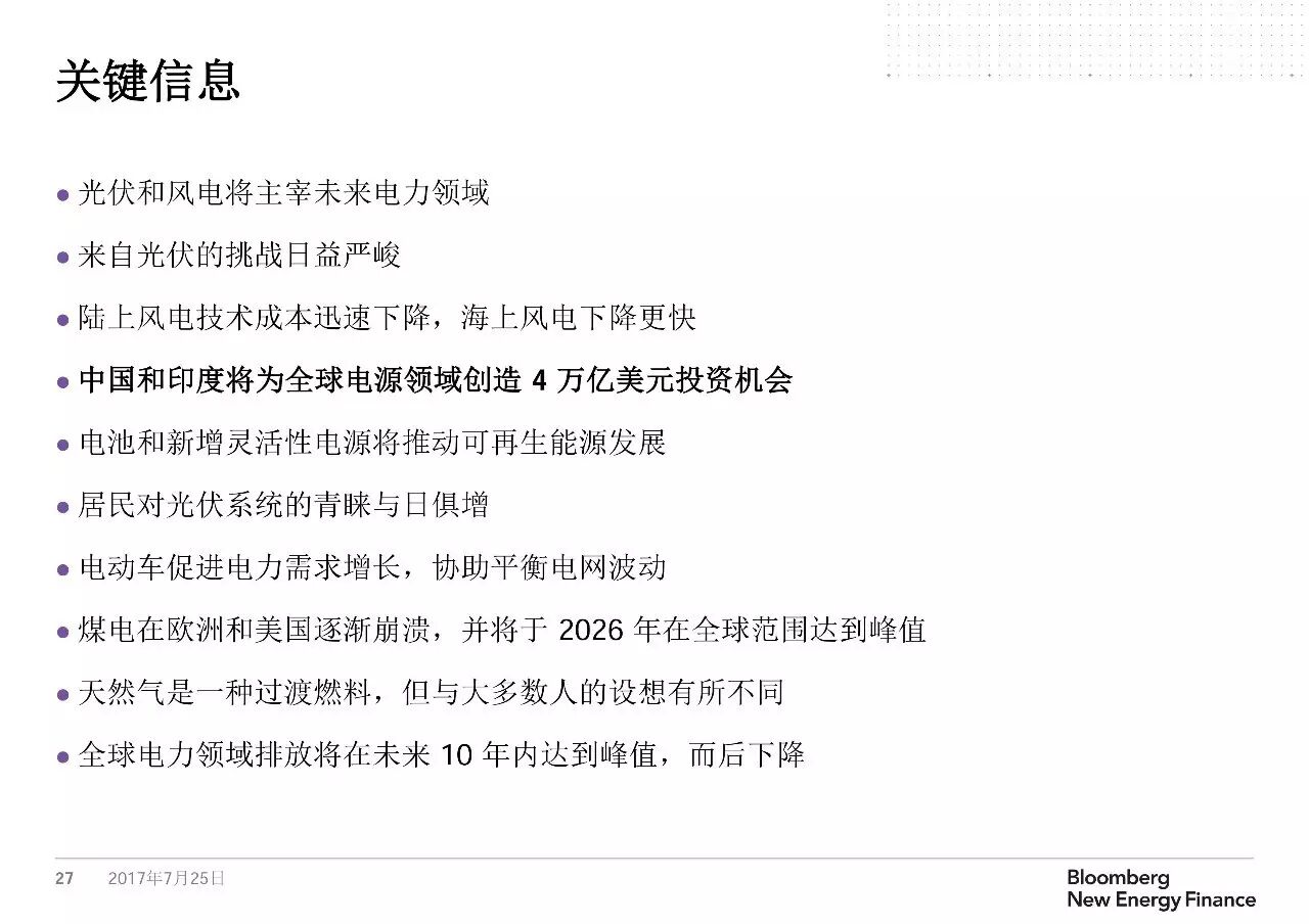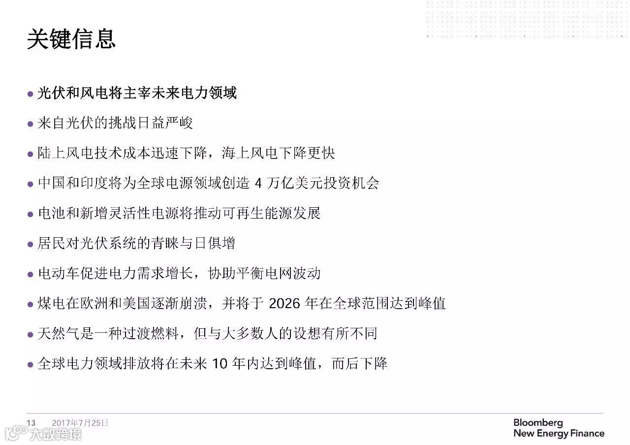 7月25日,彭博新能源财经发布2017新能源展望报告,本文为报告PPT版本。