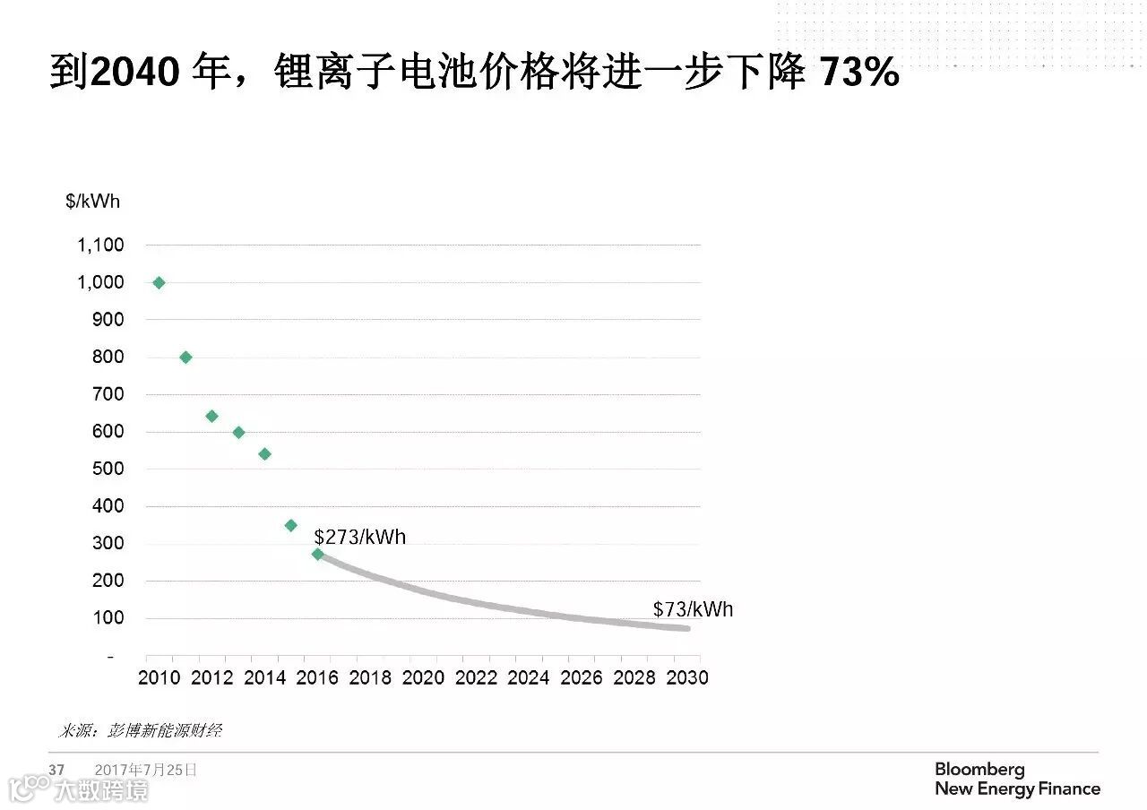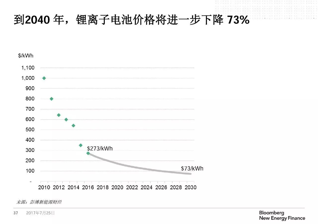 7、到2040 年,锂离子电池价格将进一步下降 73%