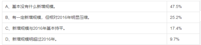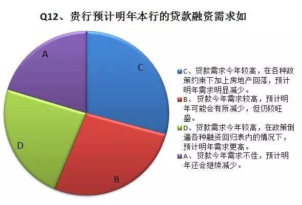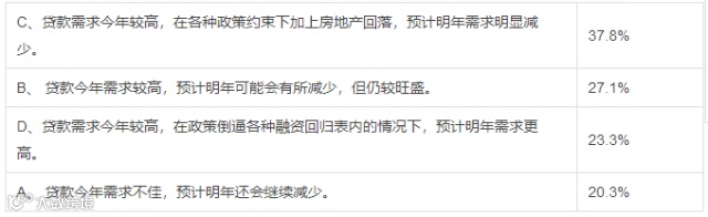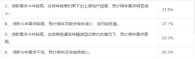 贷款需求方面的调查,绝大多数银行(80%)表示今年(2017年)信贷需求较强,但对明年(2018年)的信贷需求的看法存在差异,不过其中多数认为明年的信贷需求会有所回落。